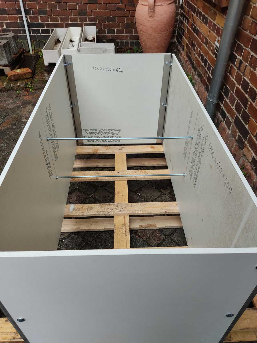 Links: In eine gefräste Kontur wurde der Schriftzug in einer Kontrastfarbe eingesetzt – das funktioniert nur mit ganz präzisen Fräsungen. Rechts: Ein Hochbeet, hier mit Faserzementplatten.