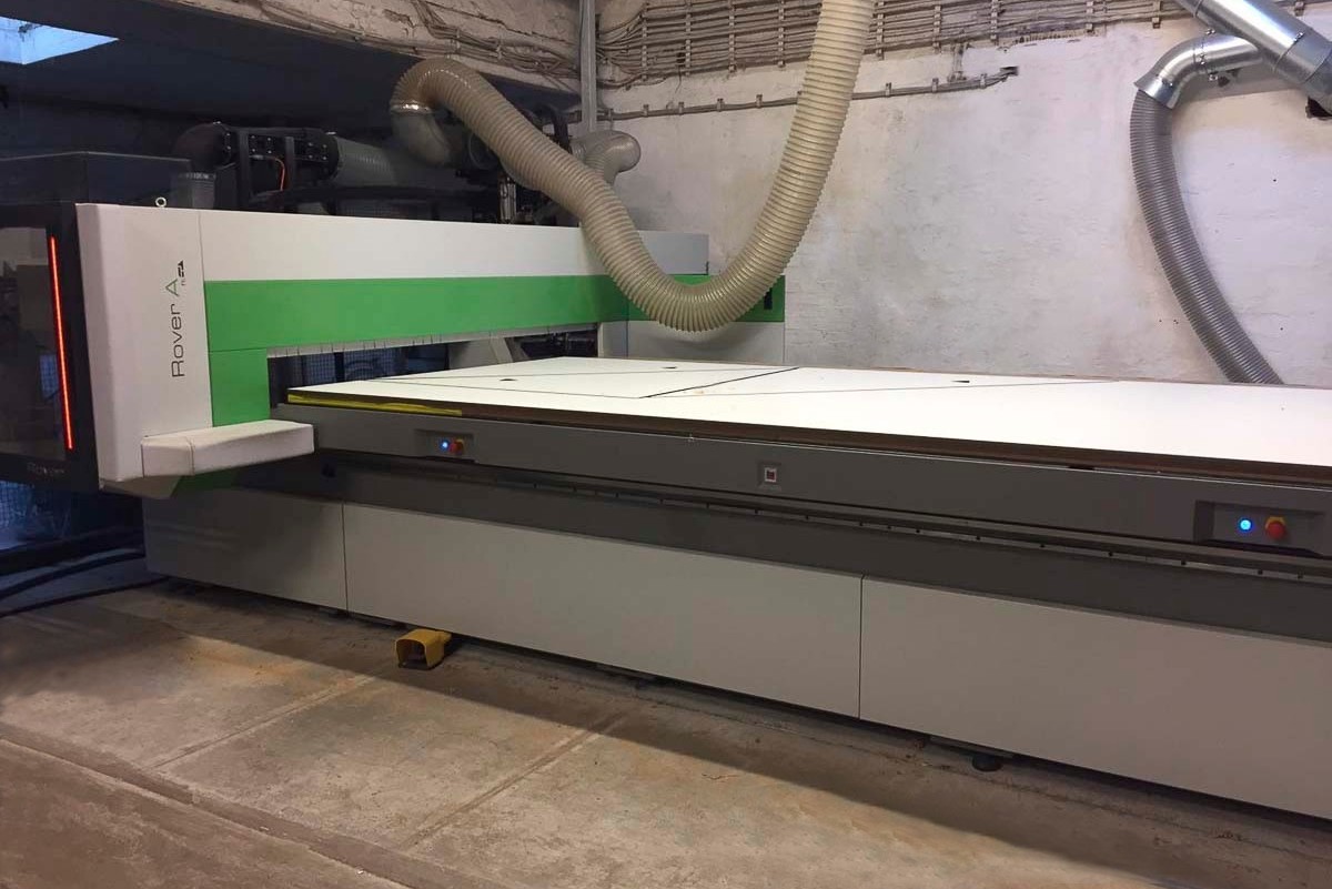 Für die Bearbeitung großer Plattenwerkstoffe – überwiegend, aber nicht nur HPL – kommt unsere computergesteuerte Säge mit einer Einlaufbreite von maximal von 427 cm zum Einsatz. Damit sind gerade Schnitte schnell und hochpräzise herzustellen.